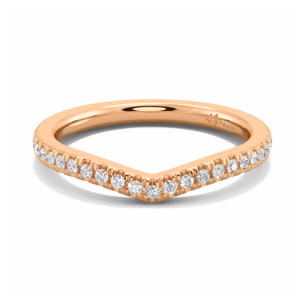 A refined shape with subtle sparkle, the ‘Edith’ ring is adorned with prong-set Moissanite that runs along a clean, contoured band. Its sharp V-shaped dip creates a modern chevron silhouette, offering a soft yet structured finish.