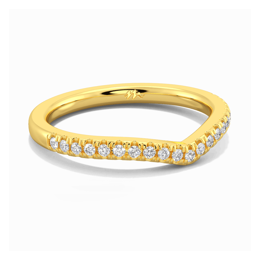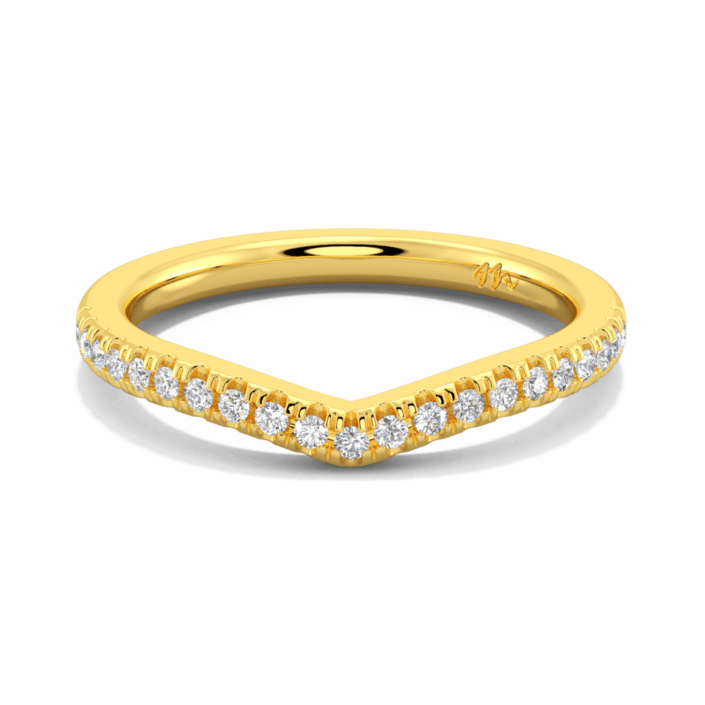 A refined shape with subtle sparkle, the ‘Edith’ ring is adorned with prong-set Moissanite that runs along a clean, contoured band. Its sharp V-shaped dip creates a modern chevron silhouette, offering a soft yet structured finish.