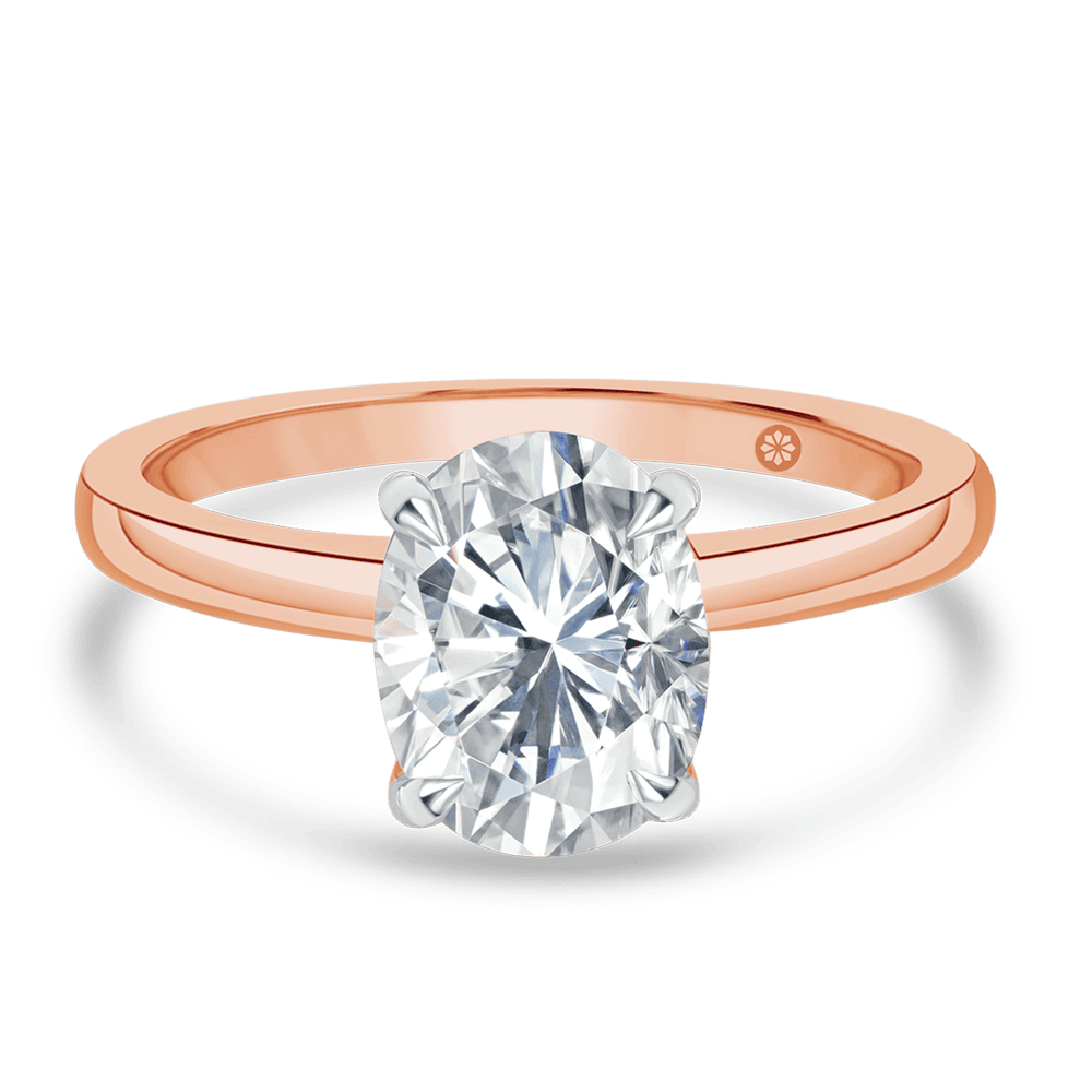 Radiate sophistication and grace with the ‘Holly Oval’ ring. The delicate half-rounded solitaire band complements the beauty of the 4-prong set oval Moissanite, resulting in a refined balance of classical elegance and contemporary style.