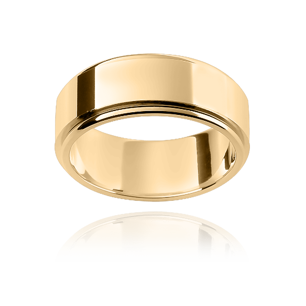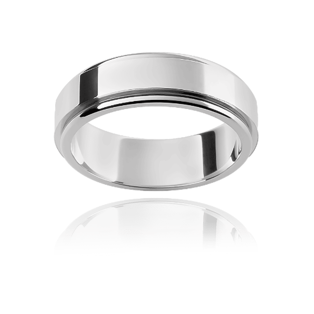 Two-tone plain flat band with slightly elevated overlay in high polished finish.