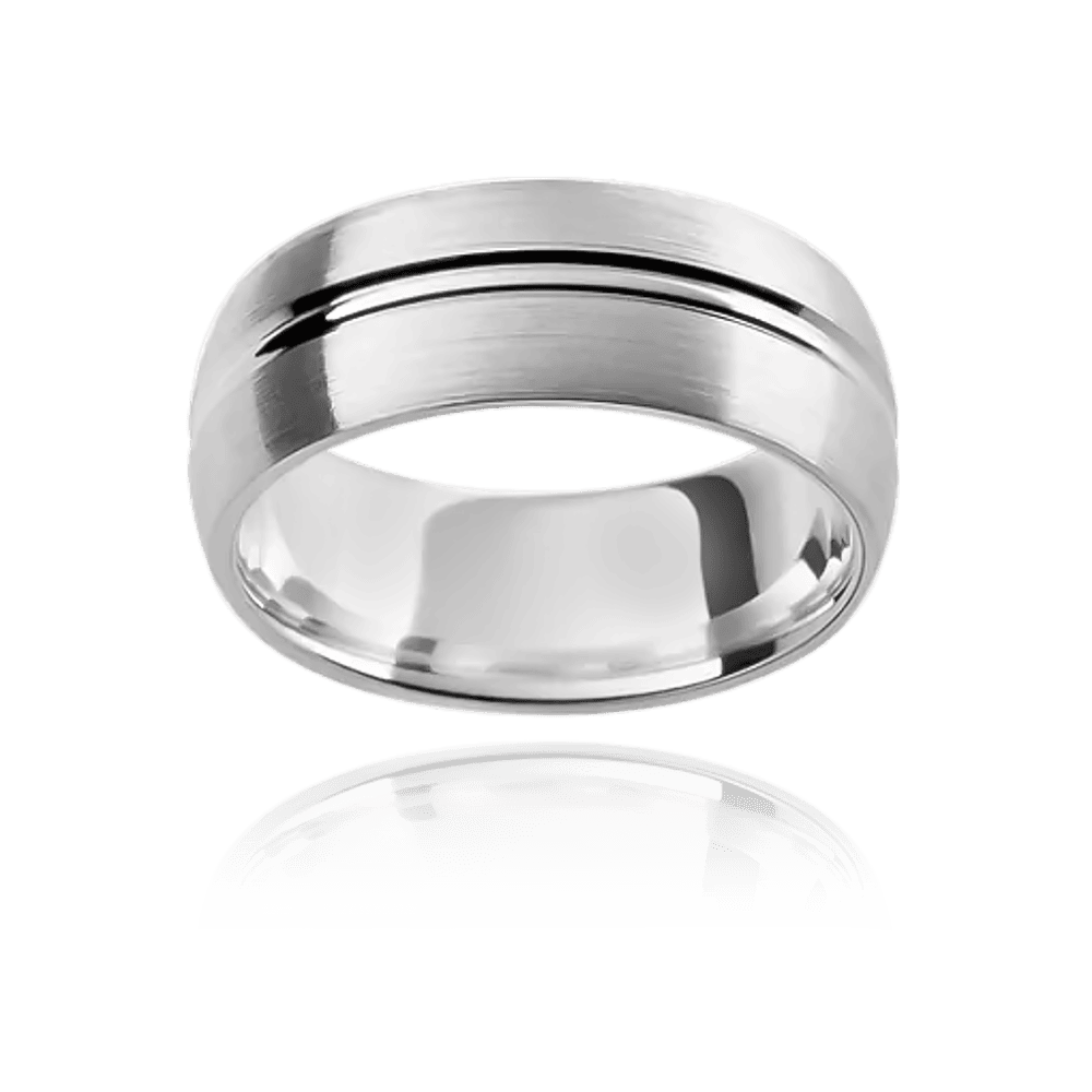 Two-tone semi-rounded ring with double polished grooved centreline on outer band and polished comfort fit inner ring